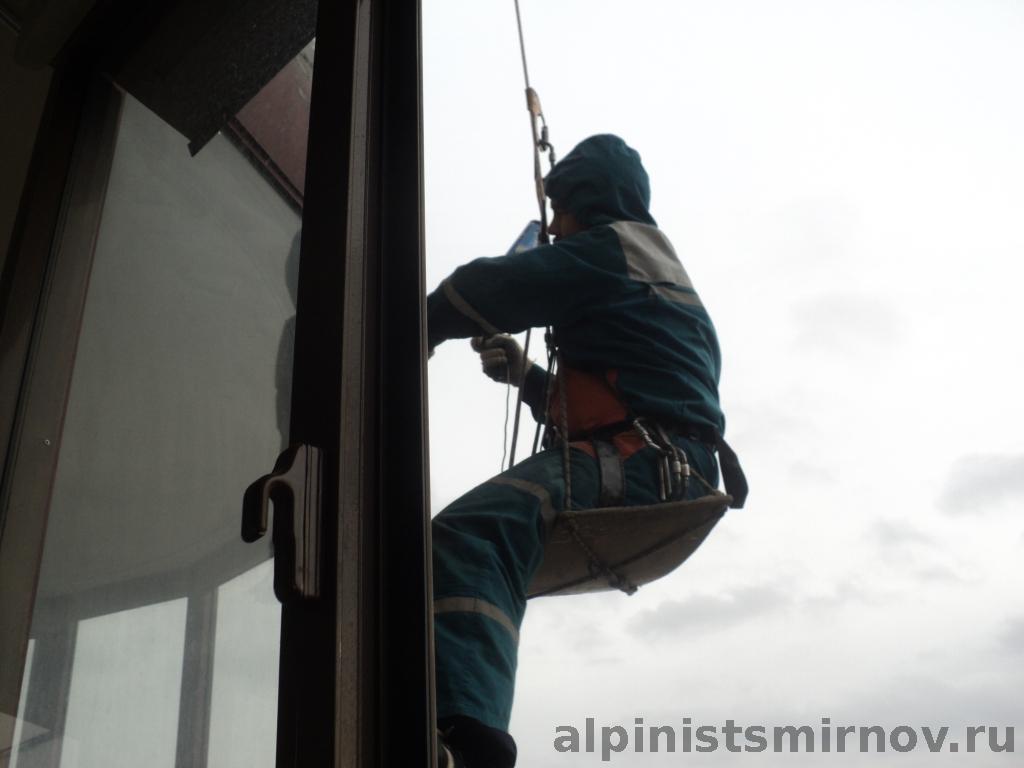 • Мойка окон альпинистами на высоте