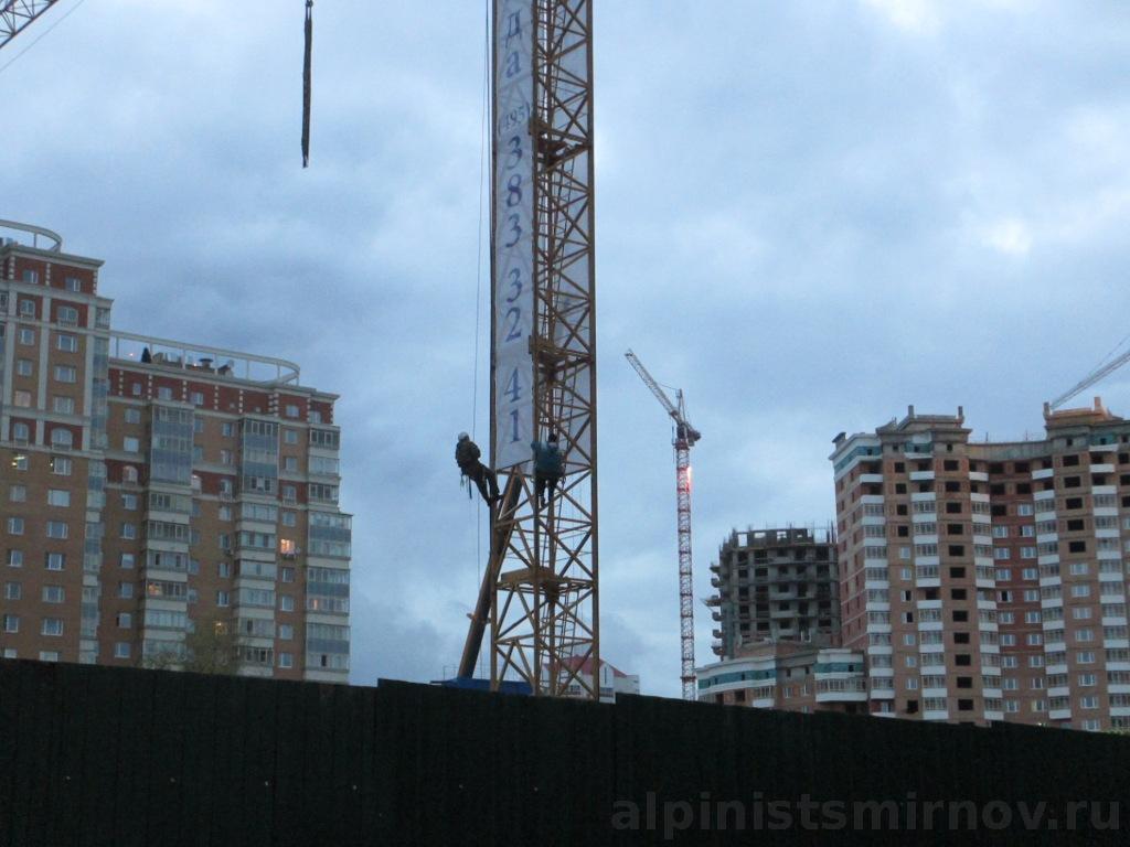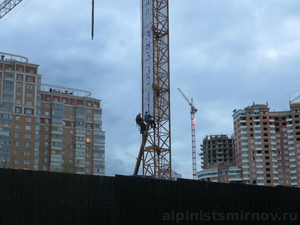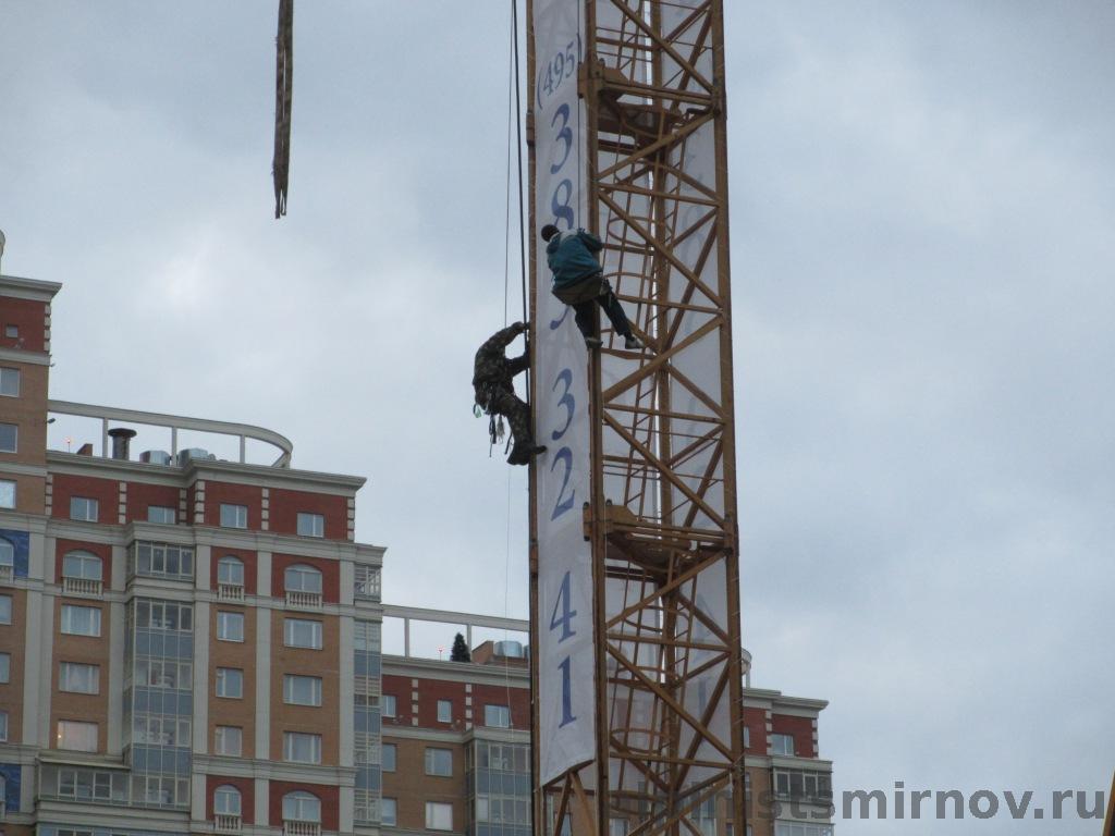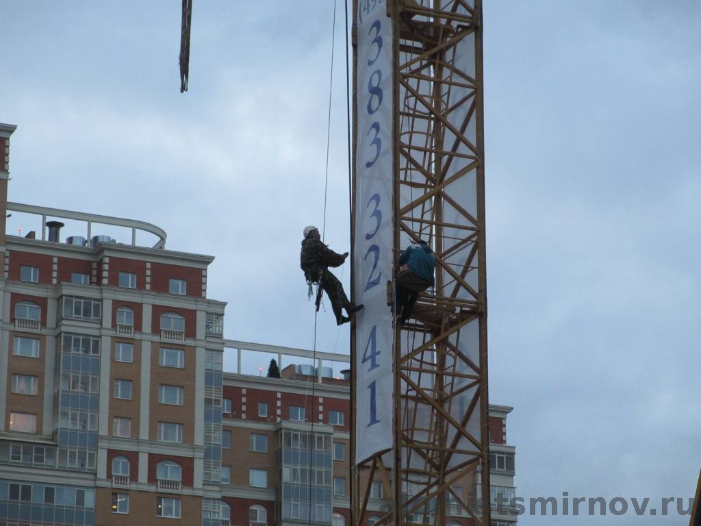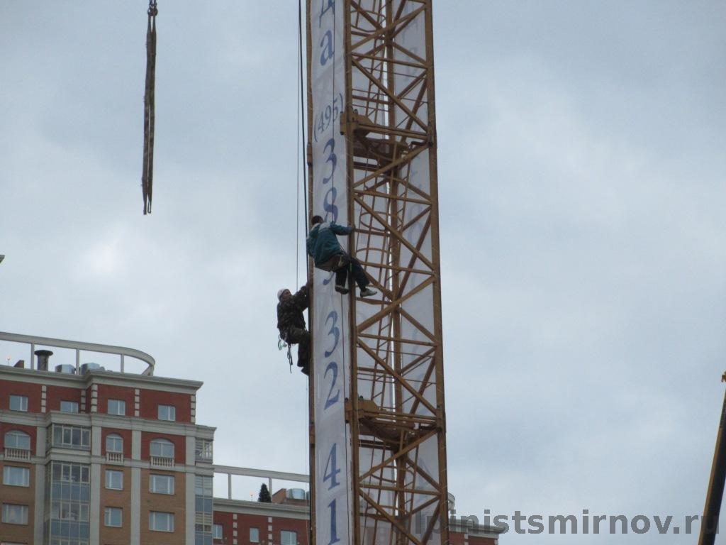 Монтаж баннера на кран. 8 сентября 2013 года.