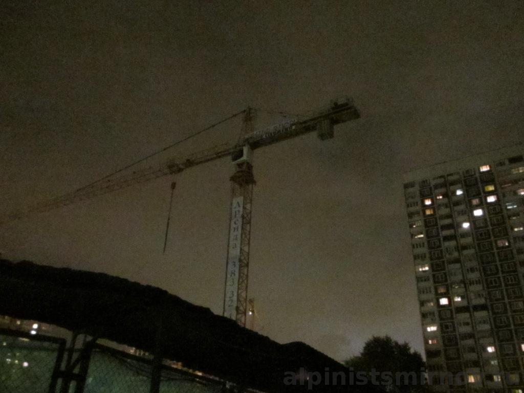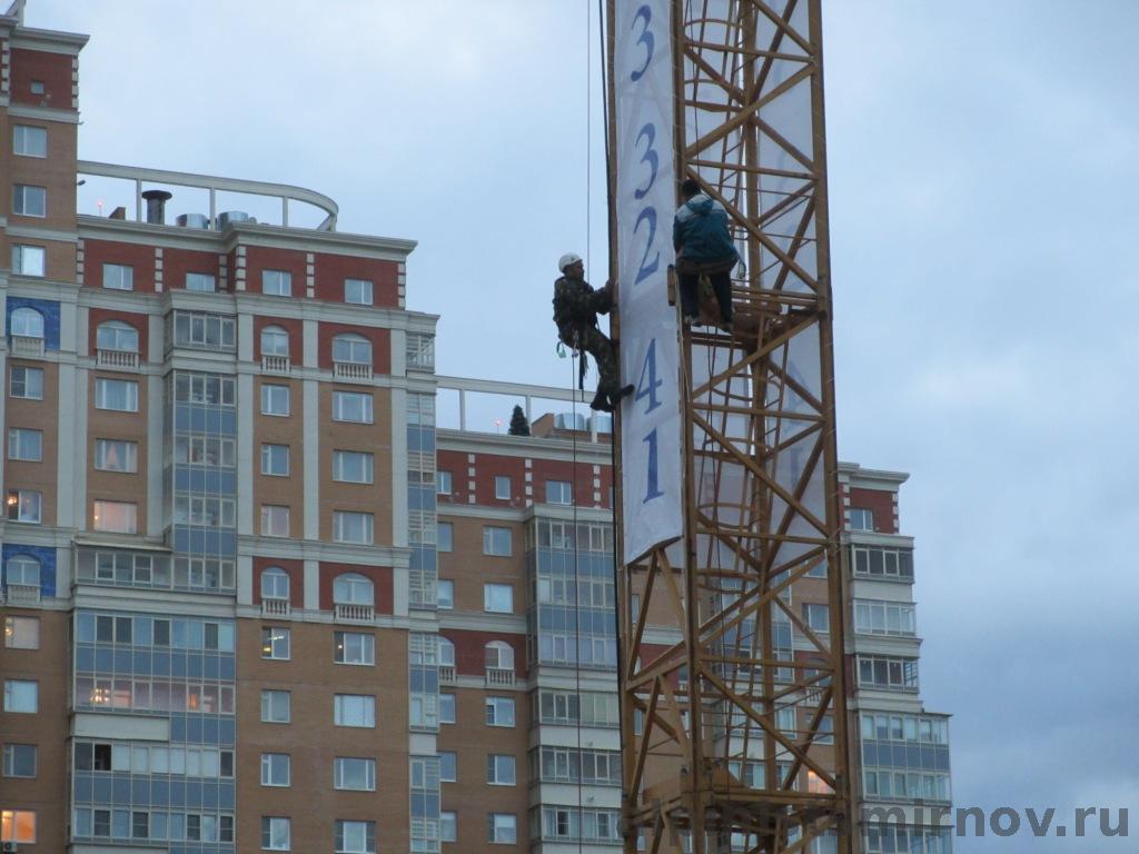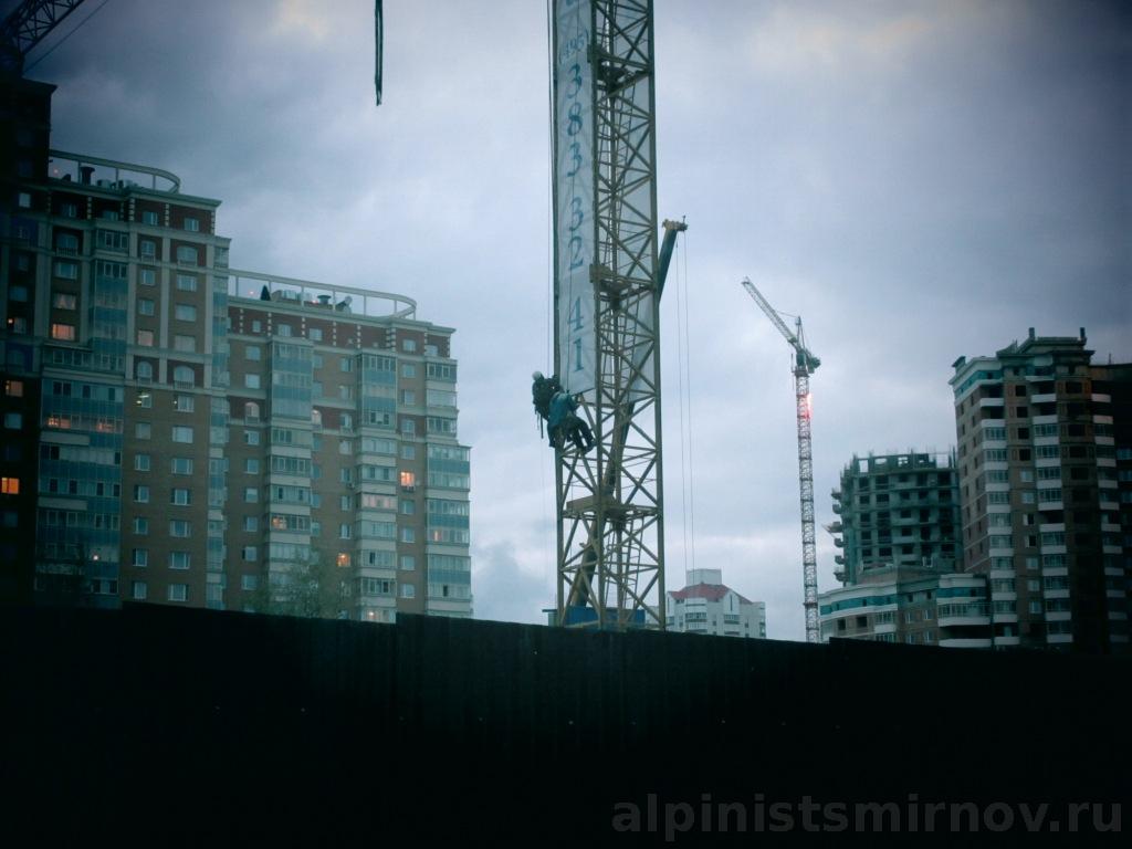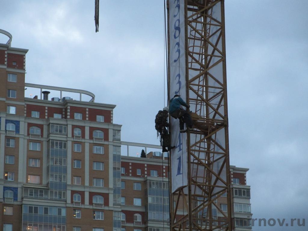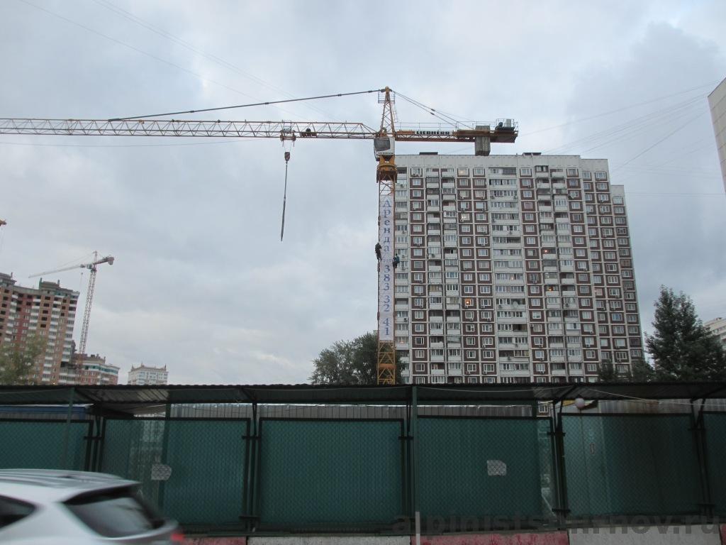 Монтаж баннера на кран. 8 сентября 2013 года.