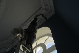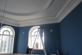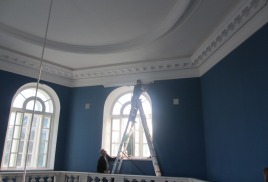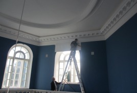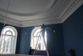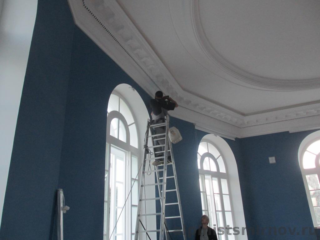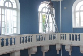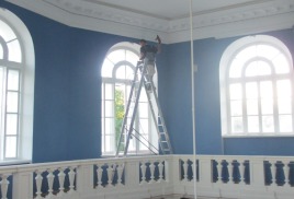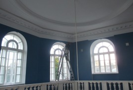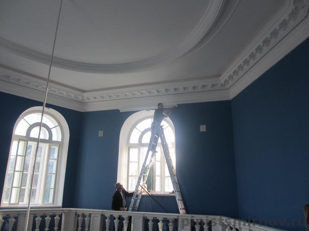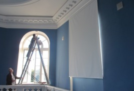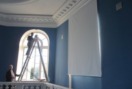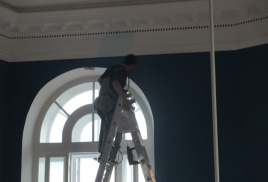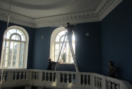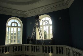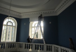 Установка рулонных штор в усадьбе Кусково накануне открытия там выставки "Ода стеклу"